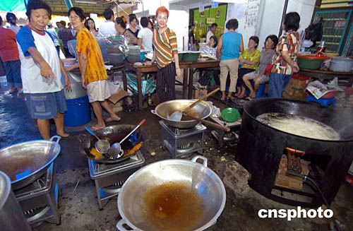 印度尼西亚棉兰市的华族妇女自发到灾民收容所当义工,为300多名来自班达亚齐的灾民煮食,面对繁重而辛劳的工作毫无怨言。作者:洪少葵
