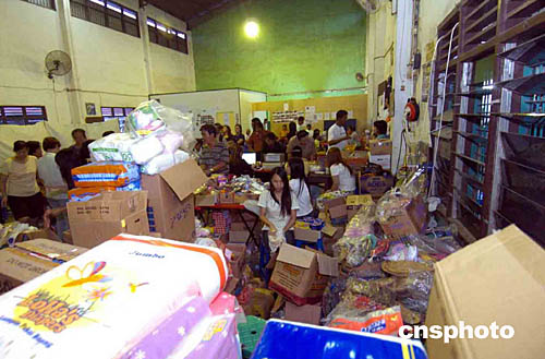 印度尼西亚华族团体的救援物资源源不断送到在棉兰市的难民收容所,大批义工挑灯夜战分配物资,将生活必需品及时送到灾民手中。作者:洪少葵