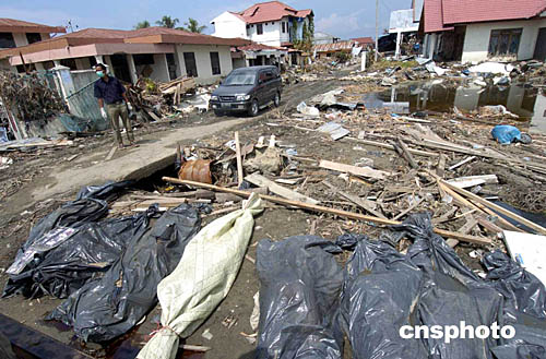 图:印尼班达亚齐灾民陆续回到灾区整理家园