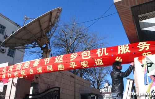 一月十一日,北京一家旅行社正为台商春节包机开设的服务站做准备工作。农历春节日益接近,在大陆的台湾同胞春节返乡包机问题再度浮上台面。作者:韩艺冰