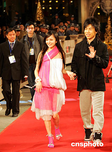一月十一日晚,第十一届全球华语音乐榜中榜颁奖盛典在沪举行,香港艺人谢霆峰(图右)和郑希怡(图左)出席。作者:汤彦俊