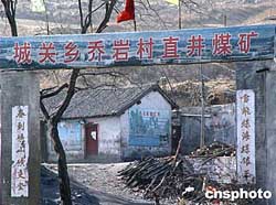图为发生矿难的河南宜阳县城关乡乔岩直井矿大门口。作者:胡珂