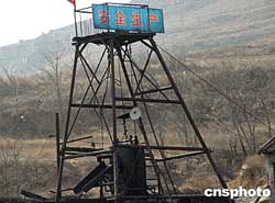 发生事故的矿井上方斗大的“安全生产”标语虽然醒目,但却没有避免矿难发生。作者:胡珂