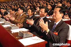 一月十五日,福建省政协九届三次会议在福州开幕,一百二十多名港澳委员到会,共商大计。作者:刘可耕