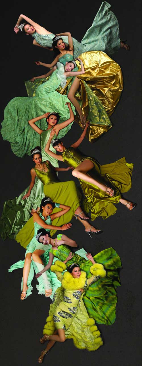 2004中国时尚大奖--年度中国最佳职业时装模特,王敏(大)、马力、韦杰、贾妮妮、栾凤玲、边彦阳、刘巾薇、张特、戴小奕(由下至上)(图片提供:黑冰摄影服装提供:WHITE COLLAT白领)