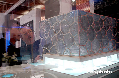 “第三届北京国际体育基础设施和场馆技术展”一月十八日在北京举行,由中建国际设计的国家游泳中心“水立方”展示时,引起外国专家注意。目前,“水立方”完成赛时全部施工图设计,工程已经“浮出”地面。中新社记者:张宇