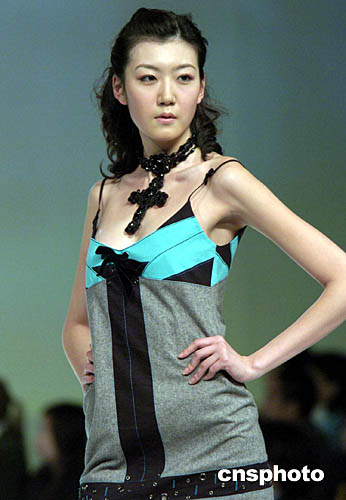 1月19日,香港会展中心举行的“香港时装节秋冬系列2005”上,模特演绎“独家时装表演”专场设计师秋冬系列服饰。作者:洪少葵