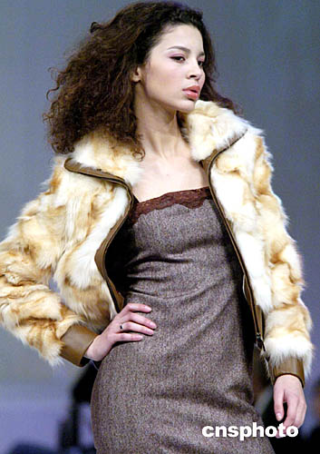 1月19日,香港会展中心举行的“香港时装节秋冬系列2005”上,模特展示“独家时装表演”专场皮草秋冬系列。作者: 洪少葵
