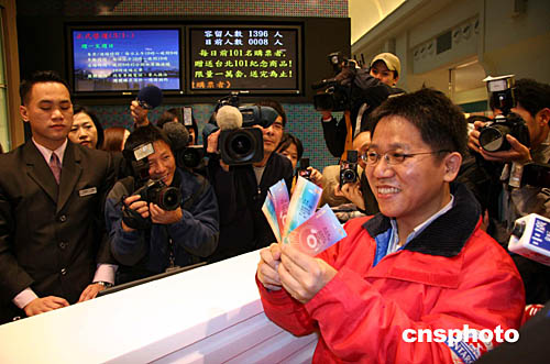 台北一O一大楼观景台今日开始试运营,前一百零一位参观者可获得礼品。中新社记者:邢利宇