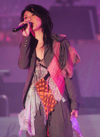 中新网1月21日电 据大公报报道,杨千嬅前晚罕有地以低胸装出席“中文金曲颁奖礼”,与同样打扮性感的容祖儿一同上台颁奖,好像互斗性感。