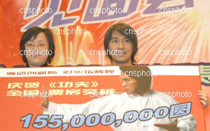 中新网1月21日电 据齐鲁晚报报道,《功夫》和《天下无贼》的票房之争终于以周星驰的胜利落幕,《功夫》凭借已取得的1.55亿元内地票房成功突围《十面埋伏》,超过《天下无贼》,成为去年在内地最卖座的一部影片。昨(20)日,周星驰开心地亮相上海,为《功夫》获得票房成绩庆功,在与众媒体分享喜悦的同时,周星驰此举无疑也有为仍在上映的《功夫》再燃一把火的“嫌疑”。
