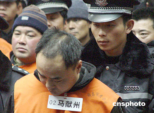 一月二十一日上午九时,许昌市中级人民法院对“中原涉黑第一案”——宋留根、马献州、郝洪山特大涉黑团伙案,进行一审宣判。图为主犯马献洲被判处死刑,剥夺政治权利终身。以宋留根为首的涉黑犯罪团伙是五十年来河南最大的犯罪集团。作者:胡珂