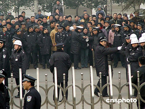 一月二十一日上午九时,河南许昌市中级人民法院对“中原涉黑第一案”——宋留根、马献洲、郝洪山特大涉黑团伙案,进行一审宣判。当地民众聚集在法庭外等待判决。以宋留根为首的涉黑犯罪团伙是五十年来河南最大的犯罪集团。作者:胡珂