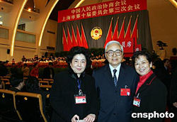 一月二十一日,上海市政协十届三次会议圆满完成各项议程并举行闭幕仪式。图为香港的上海政协委员谭茀芸(左)与叶公琦(中)、何静芝在一起。作者:潘索菲