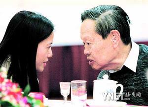 从杨振宁上台讲话到他回到自己的座位上,翁帆的目光始终追随着他。两人在联谊会期间几乎很少交谈,每次都是杨振宁首先和妻子说话,翁帆则把头靠过去仔细倾听,还不时地流露出幸福的微笑。(李仲虞)