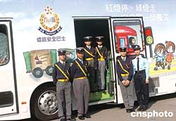 香港唯一的一辆道路安全巴士宣传车每天流动于全港各区﹐车内的各种示范演示﹐告诫人们遵守道路安全的重要﹐自启用以来受到很好的效果。作者:赵振清