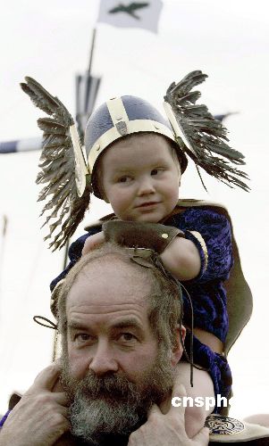 1月25日,在英国苏格兰地区,当地人举行传统的“火节”庆典。首先进行的是烧“维京船”仪式,以纪念他们的祖先数百年前成功地打败了“北欧海盗”维京人的入侵。Ic/cnsphoto