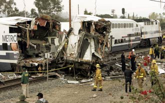 警方和救援人员称,初步调查表明这起重大交通事故是由一名打算自杀的年轻人将汽车停在铁路轨道上造成的。事发时,一列往南行进的轻轨列车在洛杉矶地区的格伦代尔镇撞上这名年轻人停放在轨道上的吉普车后出轨,又与另一列往北行进的轻轨列车相撞,车厢翻倒。
