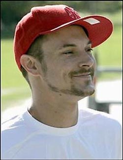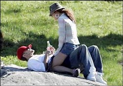 凯文-费德林今年26岁,已经是两个孩子的父亲。去年和布兰妮-斯皮尔斯结婚后感情一直很稳定,最近更是和小甜甜一起去拉斯维加斯度假。晚一天到达赌城的布兰妮一来就奔放地跳到老公腿上,把前已晚还享受过别人大腿舞的凯文-费德林吓了一跳。