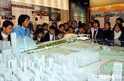 在香港科学馆举行的西九龙文娱区展览于1月31结束,小学生把握最后机会进场参观,加强对计划的认识。图为入围财团之一的展台。作者:谭达明
