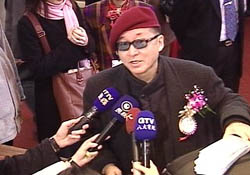 中新网2月1日电 台新科“立委”今天集体就任,李敖果然有搞怪之举,在“宣誓就职”的时候,拿出一张自己的照片对着自己“宣誓”。他并发表一封给各“立委”的信,建议废止“就职宣誓条例”。