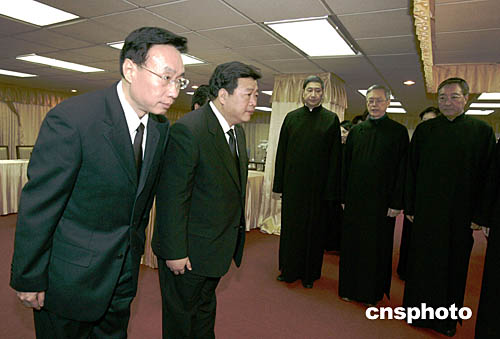 孙亚夫、李亚飞等代表汪道涵到辜振甫的灵堂吊唁