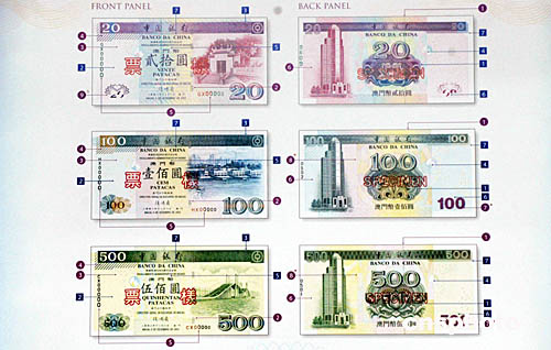 据悉,新版澳门币与旧版纸币相比,在保留了原来八项主要防伪特征的基础上,增加了磁性微文字安全线、全息开窗安全线、白水印、凹印手感线、钞票编号及荧光等。