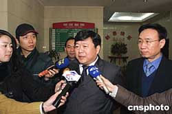赴台吊唁辜振甫的海协会会长汪道涵个人代表孙亚夫、李亚飞,二月三日在上海专程向汪道涵作“台湾之行”的回顾和介绍,汪道涵对辜振甫家属热情接待他的个人代表表示感谢。图为孙亚夫(中)、李亚飞(右)接受媒体采访。作者:潘索菲