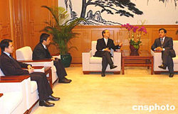 外交部驻港特派员杨文昌2月4日在香港外交部驻港公署会见香港民建联立法会议员刘江华﹐就为去年印度洋海啸灾难中受困港人提供协助及涉港领事保护等问题进行了交谈。中新社记者:赵振清
