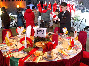 与家常菜形成鲜明对比的是,在某些大酒店推出了价位高达五万元人民币的年夜饭和公司答谢宴。记者采访了酒店相关负责人,他们表示为了方便公司答谢客人才准备的答谢宴,是从市场和商业的角度考虑才有所设置的,且宴会的价格公司也能够接受。所以,尽管有些筵席和年夜饭价位很高,但其走势还是上升的。