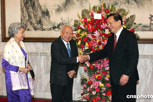 中国国务委员唐家璇二月七日在北京钓鱼台国宾馆会见柬埔寨前国王西哈努克。作者:毛建军