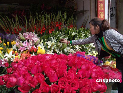 2月13日,永川花店员工积极储备玫瑰花。“情人节”将到,重庆永川市内的大小花店精心组织各品种的玫瑰花,以充足的货源方便广大市民挑选。作者:陈仕川