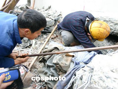 本社记者今天中午赶到事故现场看到,摔得变形的铺轨车横卧在地,碎裂的石梁、石块满布周围,发生事故的桥墩至少有二十米高。消防人员和铁路建设工人正努力在堆积的乱石中搜寻遇难者的遗体。部分当地村民亦加入到了救援行列中,抬着担架随时待命、手执铁锹帮助消防人员清理现场、亲手刨开乱石搜寻遇难者遗体……