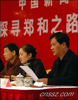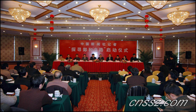 为纪念郑和下西洋六百周年,中新社派出文字记者韩胜宝、摄影记者蒋振江,带了一百多个探寻题目,采访海内外郑和研究的专家学者,探访郑和的遗迹,从政治、军事、航海、经贸、文化、科技、外交、宗教等领域,通过文字和图片全方位向世人揭示许多鲜为人知的郑和之谜,宏扬郑和伟大的民族精神。探寻活动至七月十一日郑和七下西洋纪念日前返回,历时四个月。主要采访地在东南亚一带还有国内的云南郑和出生地、福建泉州郑和停泊港和南京郑和造船地。参加活动仪式的还有中新社副总编田惠明、总编辑助理张明新和江苏分社社长陈光明。来自上海、南京、苏州等地的新闻界人士也参加了仪式。