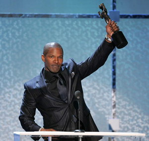 今年无疑是属于杰米福克斯的一年,除了以《雷》片入围奥斯卡影帝外,他还以《借刀杀人》提名奥斯卡最佳男配角奖,表现极为耀眼。而灵歌王雷-查尔斯生前最后的专辑在本月举行的格莱美颁奖礼上获得八项大奖,也为杰米福克斯问鼎奥斯卡小金人增添了砝码。