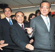 国民党昨天推出大阵仗接机,党务干部从秘书长林丰正、一级主管们通通到场,副主席有王金平、马英九、林澄枝,另三位副主席江丙坤、萧万长及吴伯雄都未到,但吴伯雄的儿子、新科“立委”吴志扬代表前往接机。