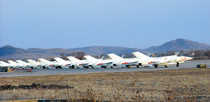 寂静,沉闷的寂静,仿佛在积蓄着一种无声的力量。空旷的机场,一排墨绿色的战鹰剑指长空,列阵待发。