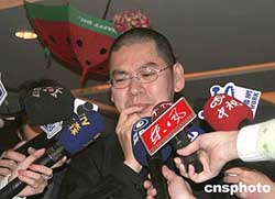 刚刚捧回柏林电影节银熊奖的中国台湾导演蔡明亮,二月二十四日在台北举行的庆功会上接受媒体采访。蔡明亮正为获奖影片《天边一朵云》能否在台湾完整上映而苦恼,片中不少大胆的性爱镜头引起岛内社会各界争议。作者:曾嘉