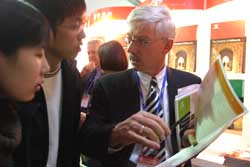 二月二十六日,第十届中国国际教育巡回展在北京中国国际贸易中心开幕。参加本届教育展的共有英国、法国、荷兰等近二十七个国家和地区的三百五十多所高校和教育机构。图为中国学生在澳大利亚高校代表团展区咨询出国留学事宜。作者:张勤