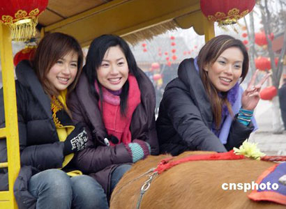 “二00四香港小姐赴豫亲善采风团”二十三日抵达郑州,在豫八天时间,应届“港姐”冠亚季军徐子珊、朱慧敏、符思思,将沿河南省入境游主要黄金路线的郑州、洛阳、开封等城市的精品景区采风。
