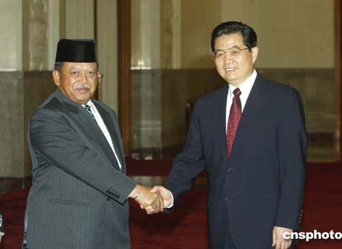 图:胡锦涛主席会见马来西亚最高元首西拉杰丁