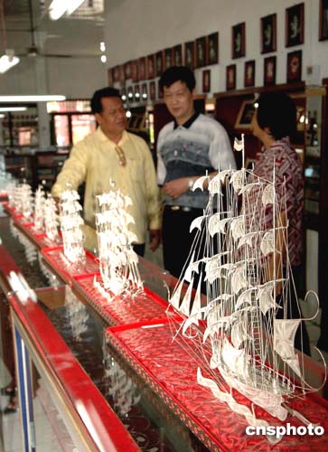 “探寻郑和之路”的中新社二记者来到巴厘岛民族村,这里留有郑和下西洋深深的印记。在一银饰展览馆,当地银匠为纪念郑和下西洋600周年,用银制成的郑和下西洋宝船十分精美。银店老板对记者说,郑和下西洋开展海上贸易,给巴厘岛带来了繁荣,也使我们学会了中国精湛的制银工艺。我们制作郑和银宝船,就是为了纪念郑和这位伟大的航海家。作者:蒋振江