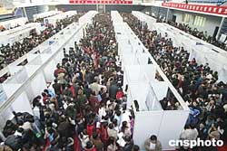 “清华大学2005年毕业生就业洽谈会”三月二日在北京举行,中外一百七十多家招聘企业参加洽谈会,万余名毕业生与招聘机构洽谈。作者:钱兴强
