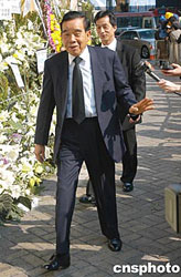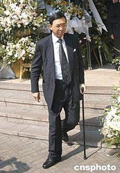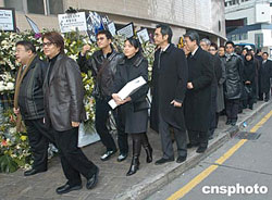 丧礼今早八时开始,以佛教仪式进行。灵堂内外放满各界祭送的花圈。