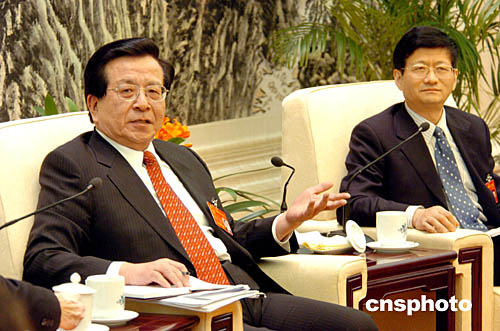 中共中央政治局常委、国家副主席曾庆红三月五日到全国人大江西团与代表们一起审议温家宝总理所作政府工作报告。 作者:陈文