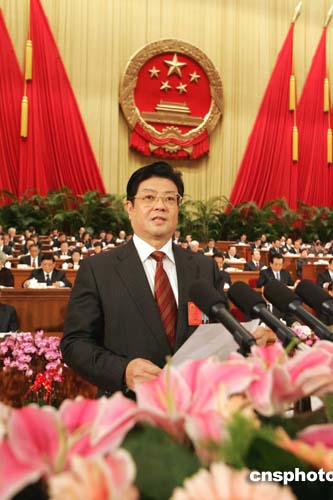 三月八日,十届全国人大三次会议第二次全体会议在北京人民大会堂举行。全国人大常委会副委员长王兆国作关于《反分裂国家法(草案)》的说明。作者:廖文静