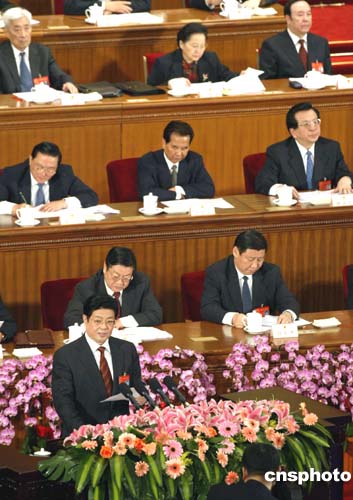 图:王兆国作关于《反分裂国家法(草案)》的说明