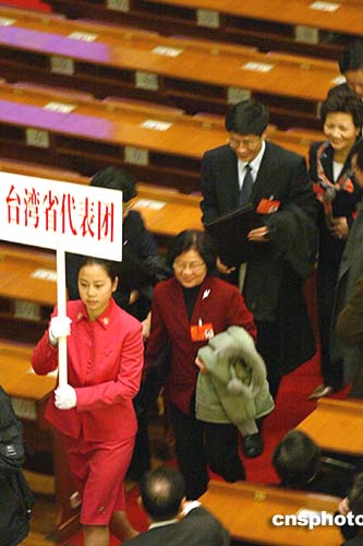 三月八日,十届全国人大三次会议第二次全体会议在北京人民大会堂举行。台湾代表团在会后前往台湾厅审议《反分裂国家法(草案)》。作者:廖文静