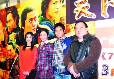 中新网3月9日电 据信息时报报道,《小鱼儿与花无缺》在香港的播出尚在纠纷当中,王晶昨(8)日已经忙于来广州参加他导演的另一部古装武侠剧集《天下第一》的首播仪式。这次广州之行,除了王晶还有郭晋安、叶璇和黄圣依。由于这部剧集囊括了不少当红艺人,包括因“鹏菲恋”成为内地头条人物的李亚鹏,香港艺人刘松仁、张卫健、郭晋安、陈法蓉、叶璇以及台湾地区艺人霍建华、陈怡蓉等“腕”级人物超过十余名,阵容已经有足够的震撼力,所以到场宣传的艺人表现得并不积极。