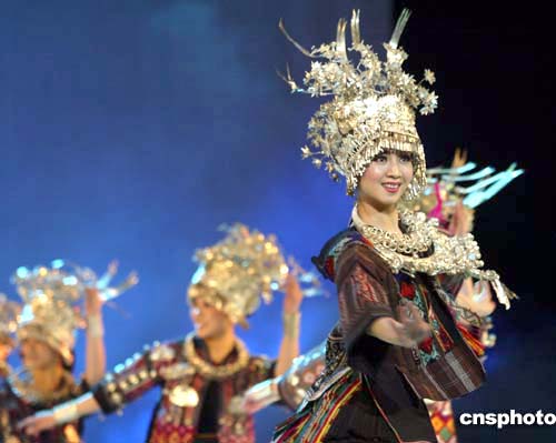 三月十日晚,由中国民族博物馆主办的“多彩中华--大型中国民族服饰表演”在北京举行,第一场的“银妆世界”酣畅淋漓地展示出南方民族对银饰的痴迷与厚爱以及他们热情奔放的性格。此次演出是“多彩中华”首次在国内亮相。此前该演出曾赴比利时、法国、意大利等国并载誉而归。全场演出由八个部分组成,分别展示了五十六个民族独具特色的服饰文化。作者:任海霞